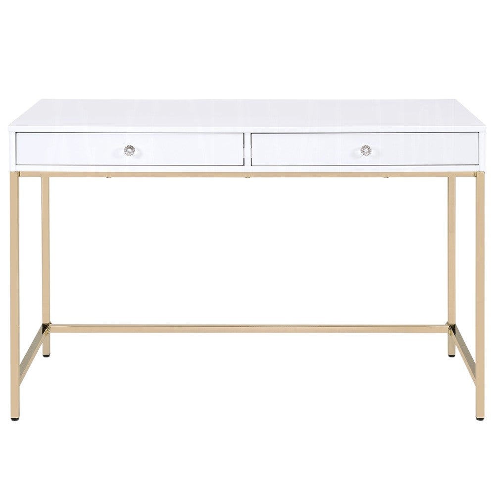 Features a chic and modern white and gold two-tone color combination accented with two clear faux crystal drawer pulls.