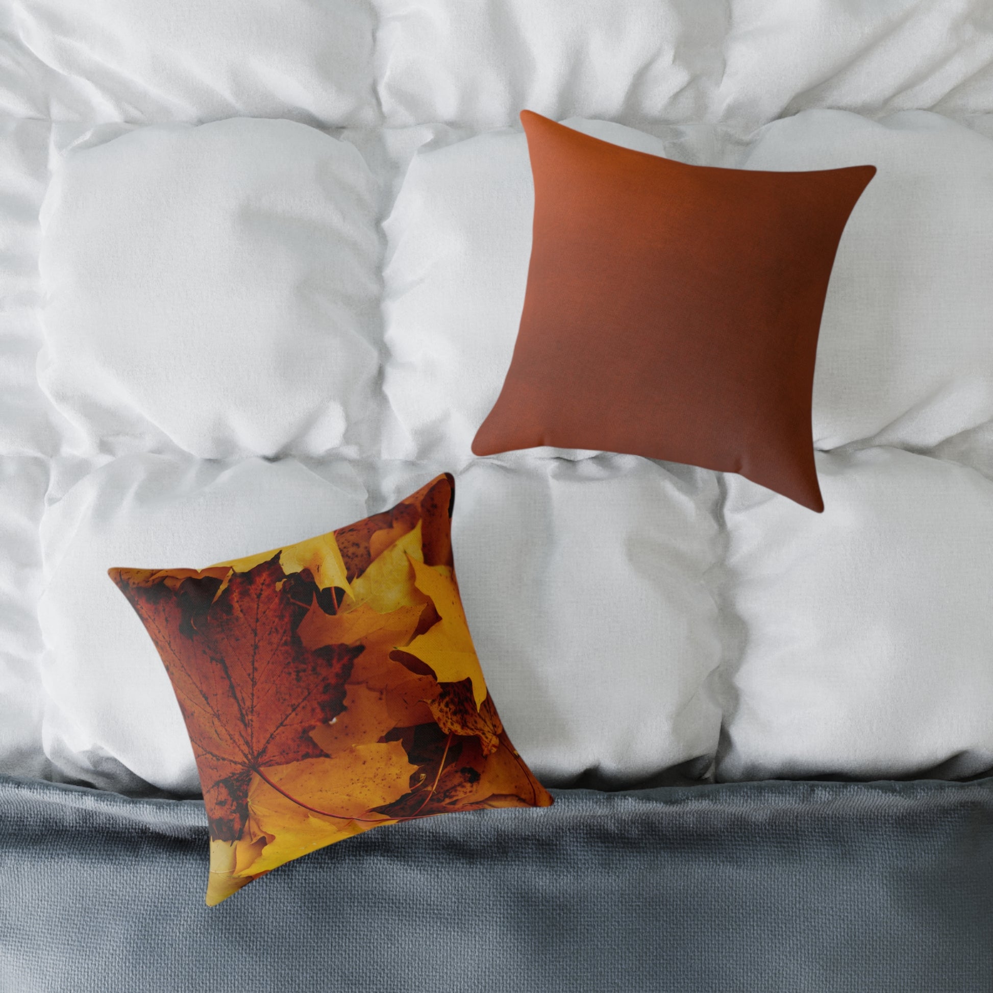 Golden Leaves Foliage And Shaded Brown Fall Decorative Pillow