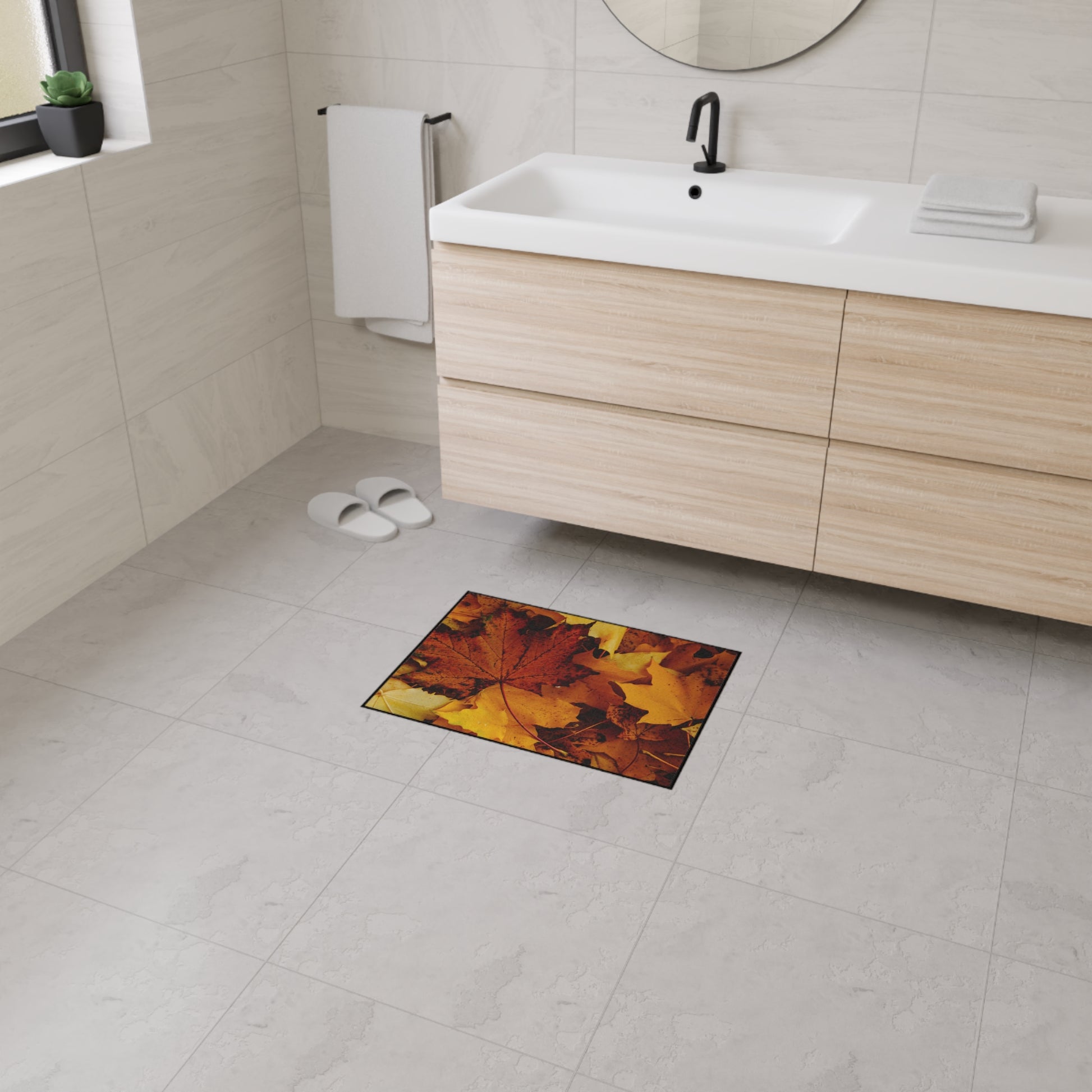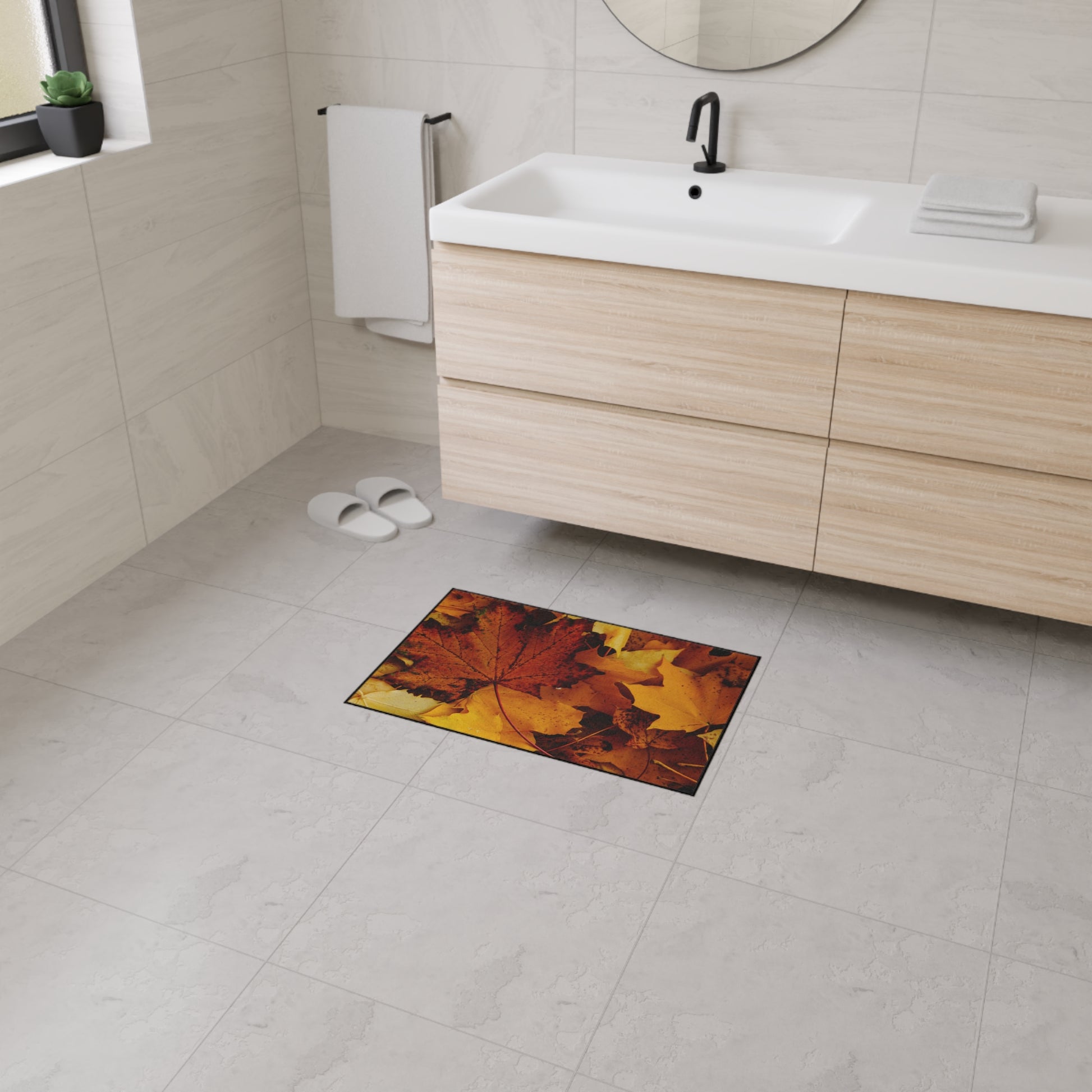 Golden Leaves Textured Fall Foliage Rug