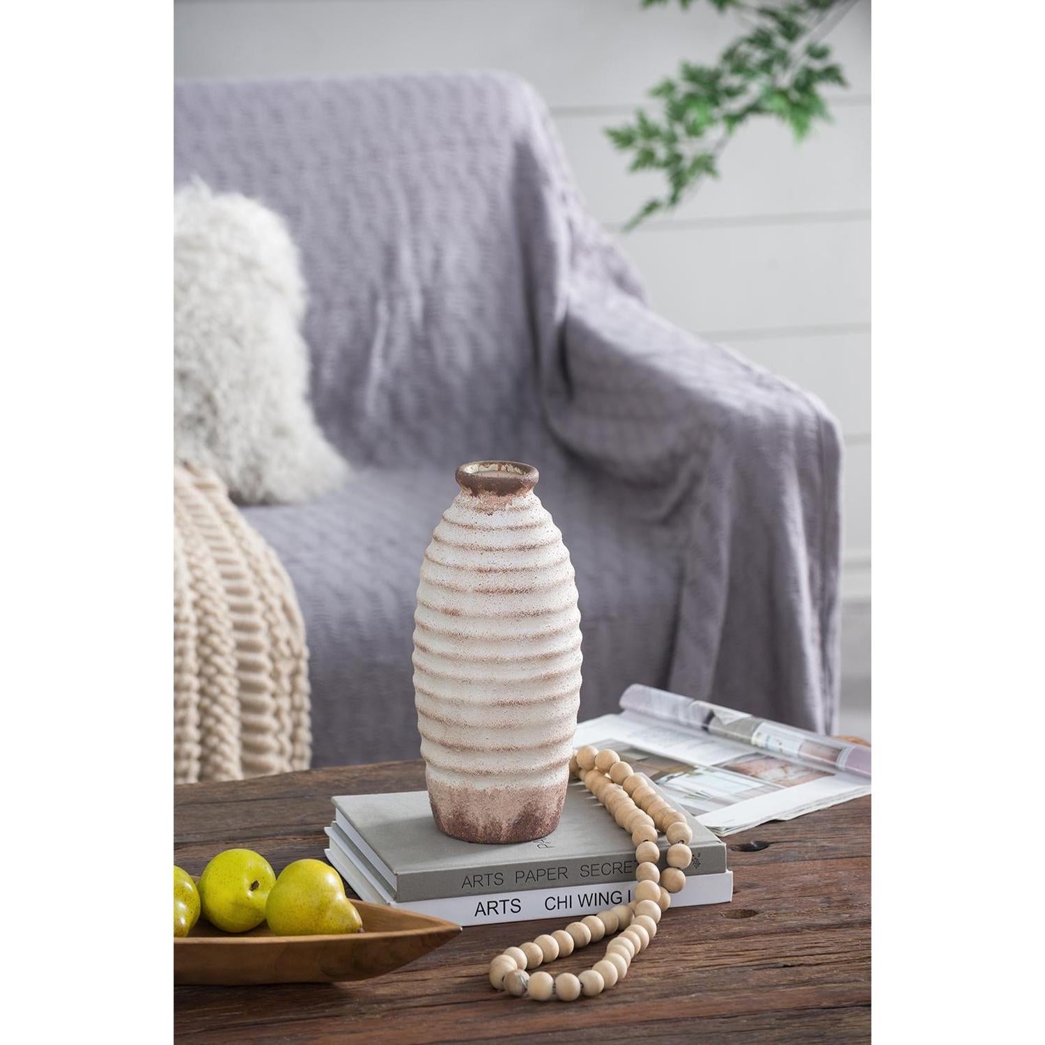 Elevate your décor with this 11-inch ivory and brown round ceramic vase, a hand-painted artisan piece that infuses bohemian sophistication into your interior. Meticulously crafted from high-quality ceramic, each vase features individualized hand-painted detailing and intentional distressing that celebrates authentic craftsmanship and vintage character. The generous round form commands presence on tabletops, mantels, or shelving while the neutral ivory-and-brown palette adapts seamlessly to varied design schemes. The bohemian aesthetic introduces artistic depth and cultural richness, transforming this functional vessel into a curated design statement. Whether showcasing seasonal botanicals or displayed as standalone sculptural art, this vase merges durability with refined aesthetics—an investment piece for discerning collectors seeking meaningful accessories that reflect personal style and appreciation for artisanal excellence.