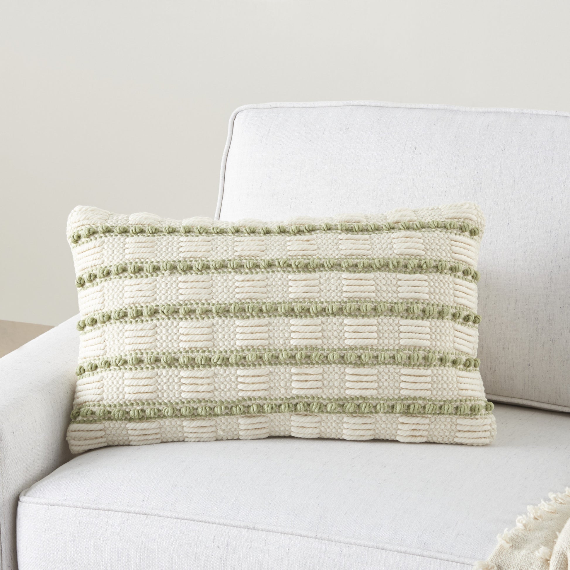 REDONDO SAGE AND IVORY STRIPED THROW PILLOW