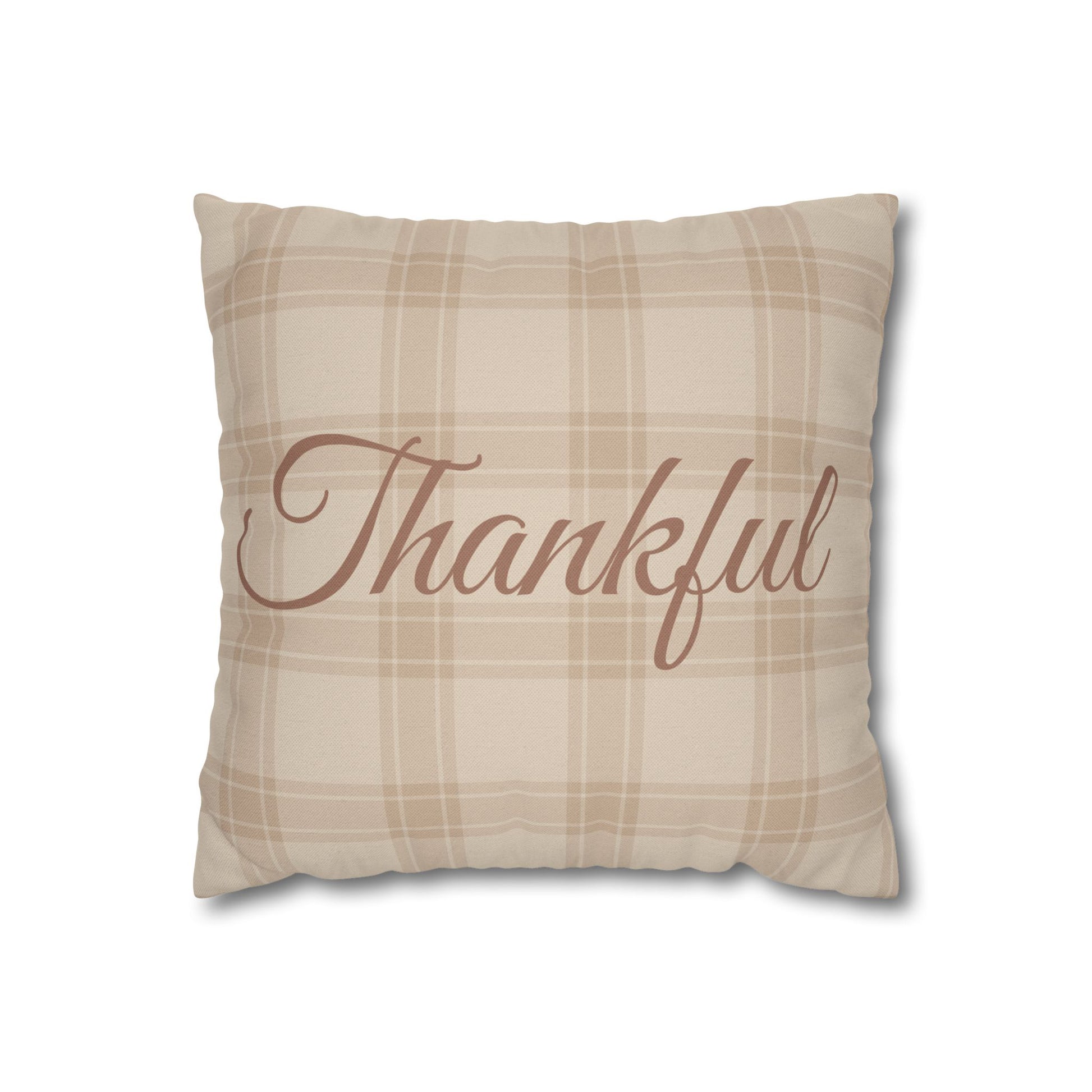 Transform your living space with this elegant square pillowcase. Crafted from 100% spun polyester, it offers durability and a wrinkle-free finish, making it a practical choice for any home. The double-sided print features a warm, inviting 'Thankful' design, perfect for adding a touch of gratitude to your decor. Ideal for cozy living rooms, inviting bedrooms, or stylish home offices, this pillowcase makes a thoughtful gift for loved ones during the holiday season or any special occasion. Celebrate moments of appreciation, from Thanksgiving gatherings to festive family get-togethers, and create a warm atmosphere that resonates with comfort and gratitude. This pillowcase is perfect for home decor enthusiasts and anyone looking to enhance their space with meaningful touches.